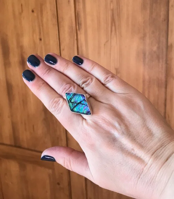 Once you have selected your cabochon, you then decide what you want it made into. This may be a ring, bracelet, pendant or earrings. This is where Chris comes in. Chris is a silversmith, but she also works with copper and gold, too. Once you’ve decided what you want your cabochon made into, Chris will then set it for you, based on your own unique requirements.