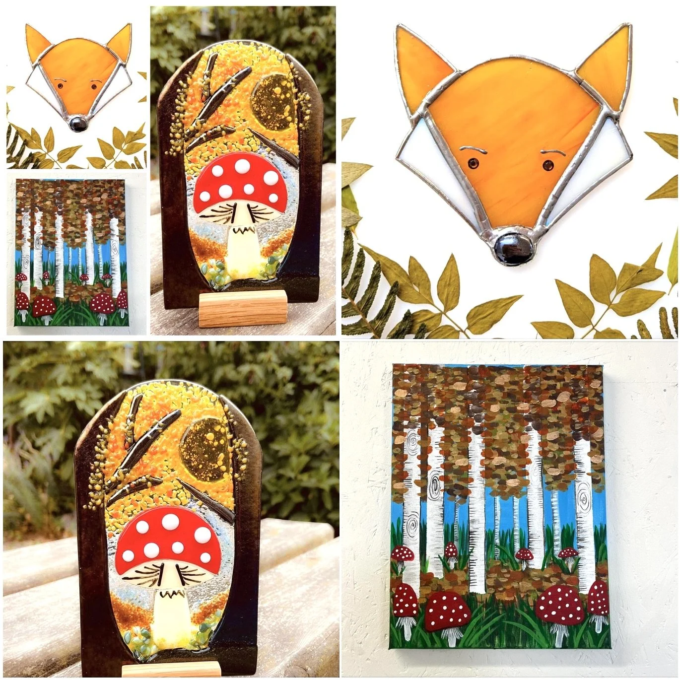 Make a fused glass scene where the mushroom (OK, Toadstool), is the star of the show. Follow this with a gorgeous stained glass fox, made using the copper-foiling technique. Finally, paint yourself a glorious forest scene under the excellent tuition of Rachel.